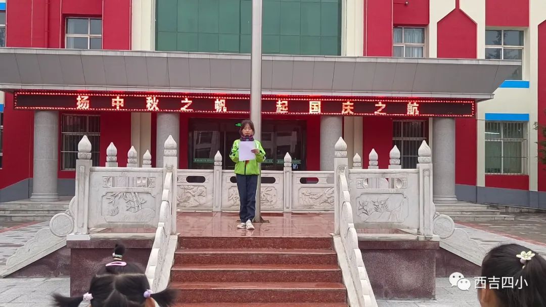 秋风送爽迎中秋,喜气洋洋庆国庆。为增强学校师生的爱国情怀,弘扬中华民族的传统文化,传承民族精神,丰富学生的校园文化生活,西吉县第四小学特开展了“喜迎中秋,欢度国庆”主题系列活动。为了让学生认识到我们是中华民族的儿女,我们要继承民族精神,坚定理想信念,努力学习,报效国家。9月25日上午,西吉县第四小学举行以“迎中秋,庆国庆”为主题的升旗仪式。