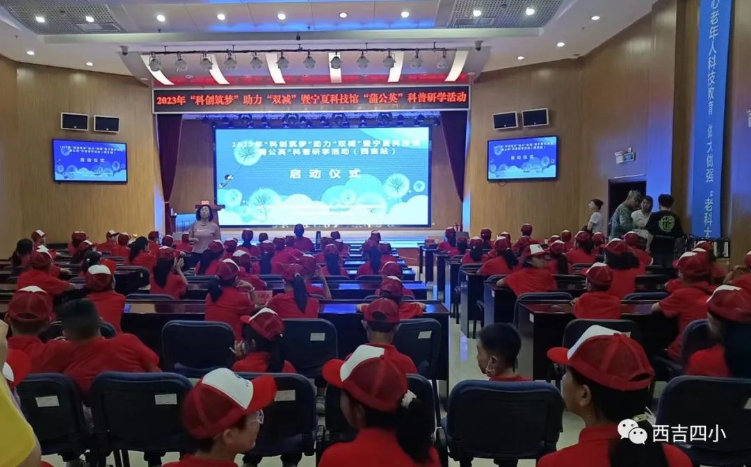 出发前,在西吉大饭店广场举行了开营仪式。参加开营仪式的有宁夏科技馆的领导、县科协领导、县教育局的领导及全县100名学生和10位带队老师。领导们做了重要讲话。