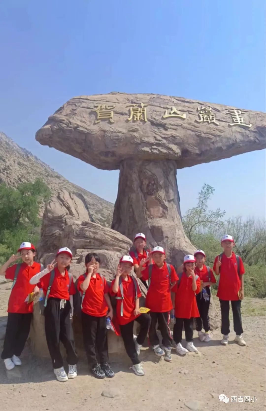 第二天,我们来到了贺兰山脚下,在讲解员的带领下,同学们欣赏着精美的岩画,聆听着讲解员耐心的讲解,积极与工作人员互动,生怕错过任何一处奇妙之旅。