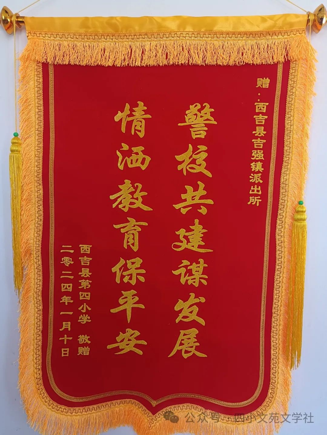 2024年1月10日是第四个“中国人民警察节”,也是全国第38个“110宣传日”。下午,西吉县第四小学党支部书记、校长何晓红、副校长司宗龙、樊杰、马小红和部分中层管理人员及学生代表前往吉强镇派出所,对全体民警送上节日的祝福和慰问。
