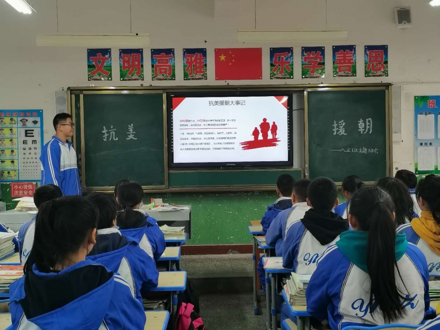 通过观看《抗美援朝保家卫国》和《伟大的抗美援朝》专题纪录片,同学们直观的感受了战争岁月的艰苦,耳听目睹了先烈们为了民族解放、国家繁荣做出的伟大牺牲。