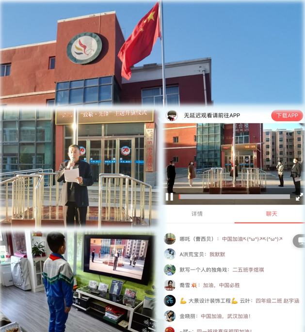 早上8点整,每位同学都早早地穿好了校服,系好红领巾,打开电脑、手机,准时参加了直播升旗仪式。当雄壮的国歌声响起时,全体师生在各个不同的地点通过网络直播视频庄重而肃穆地向着国旗行礼,高唱国歌。