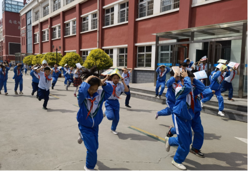 活动二:5月17日,学校举行了防震疏散演练。当警报声响起,学生迅速用双手或书本护住头部、躲在可支撑的课桌椅或墙角旁躲避地震。当解除警报声长音响起时,老师立即组织学生用手或书本护住头部、弯腰低身、沿着预定路线,快速有序地撤离教室。到达安全的地点后,各年级清点并上报安全撤离的学生人数。整个演练过程做到了环环相扣、紧张有序、有条不紊,应急演练活动取得了预期的效果。最后,德育主任徐丽娜老师对此次演练进行了总结,向全校师生普及了“防灾减灾日”相关知识,并要求全体师生要将每一次演练当成实战,在演练中总结经验,掌握科学的逃生方法,提高自身的安全应急能力。