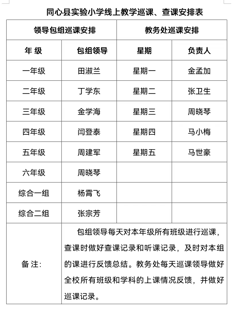 ——同心县实验小学线上教学巡课督查纪实
