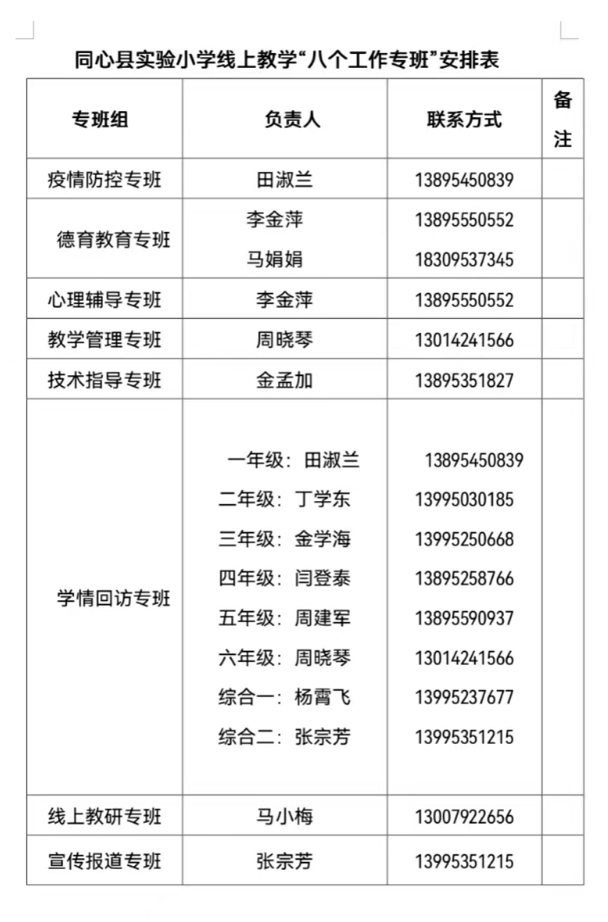 秋天如期而至,疫情却再次给已经起航的新学期按下了暂停键。同心县实验小学根据教育局《关于做好2022年疫情防控期间中小学线上教学的通知》文件精神,决定对全体学生采取线上教学。为保障线上教学质量,实验小学成立了“八个工作专班”确保线上教育教学有序有效。学校制定了线上教学督查管理制度,成立了由学校中层领导和教务处成员组成的线上教学巡课组,负责线上教学督查确保线上教学不减质。