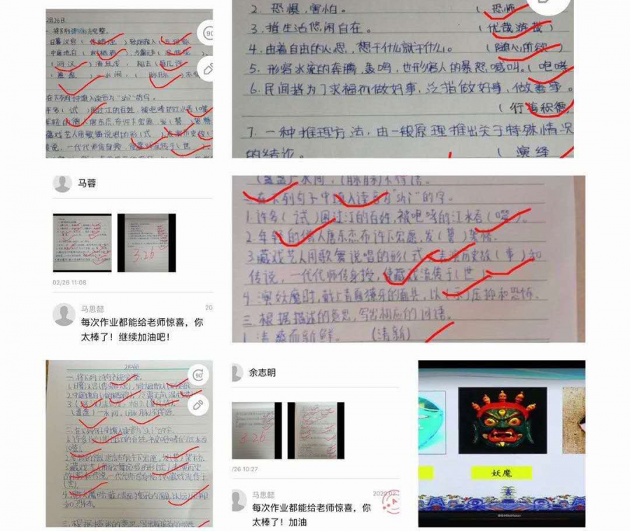 相比于传统的班级授课,空中课堂从教学设计、内容选择、作业批改等各个方面都跟线下教学有很多不一样,对学校老师们是一个不小的挑战。教师们精心设计教学,课前提前在云校家上传预习课件和学习资料、微课资源等。课后预留多种形式的作业,确保教学效果。