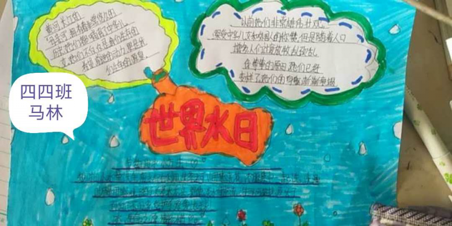 各班主任老师通过通俗易懂的讲解,直观的画面,给学生讲解了“世界水日”的来源、珍惜用水、节约用水的重要性。让学生们对我国乃至世界水资源情况有了更多的了解,让“世界水日”为更多人知道。一句“不要让世界上最后一滴水变成我们的眼泪”唤醒了学生热爱水、珍惜水、节约水、保护水的意识,激发了学生强烈的社会责任感和保护水资源意识。班会上同学们相互交流节水好方法,通过手抄报的方式表示要从自身做起,带动身边人加入到保护和节约水资源的行列中来,让每一天都是“世界水日”。