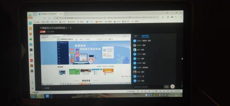 培训中教师用电脑或者手机认真聆听线上直播,仔细记录。老师们表示一定要学到位,学扎实,才能给学生上好网课。只有了解和掌握了“宁教云”授课和教学所借助的工具,才能更好地为学生服务。