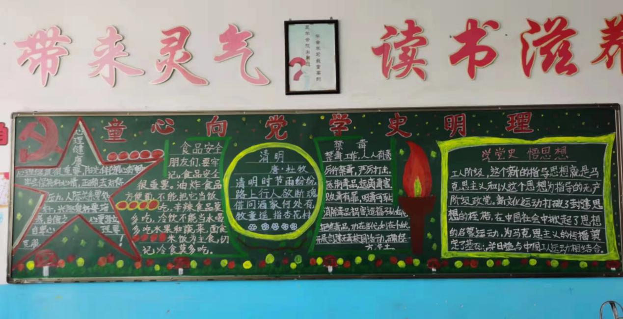 为加强对学生爱党、爱国、爱社会主义教育,3月18日,王团镇中心小学开展了以“童心向党、学史明理”为主题的黑板报评选活动。