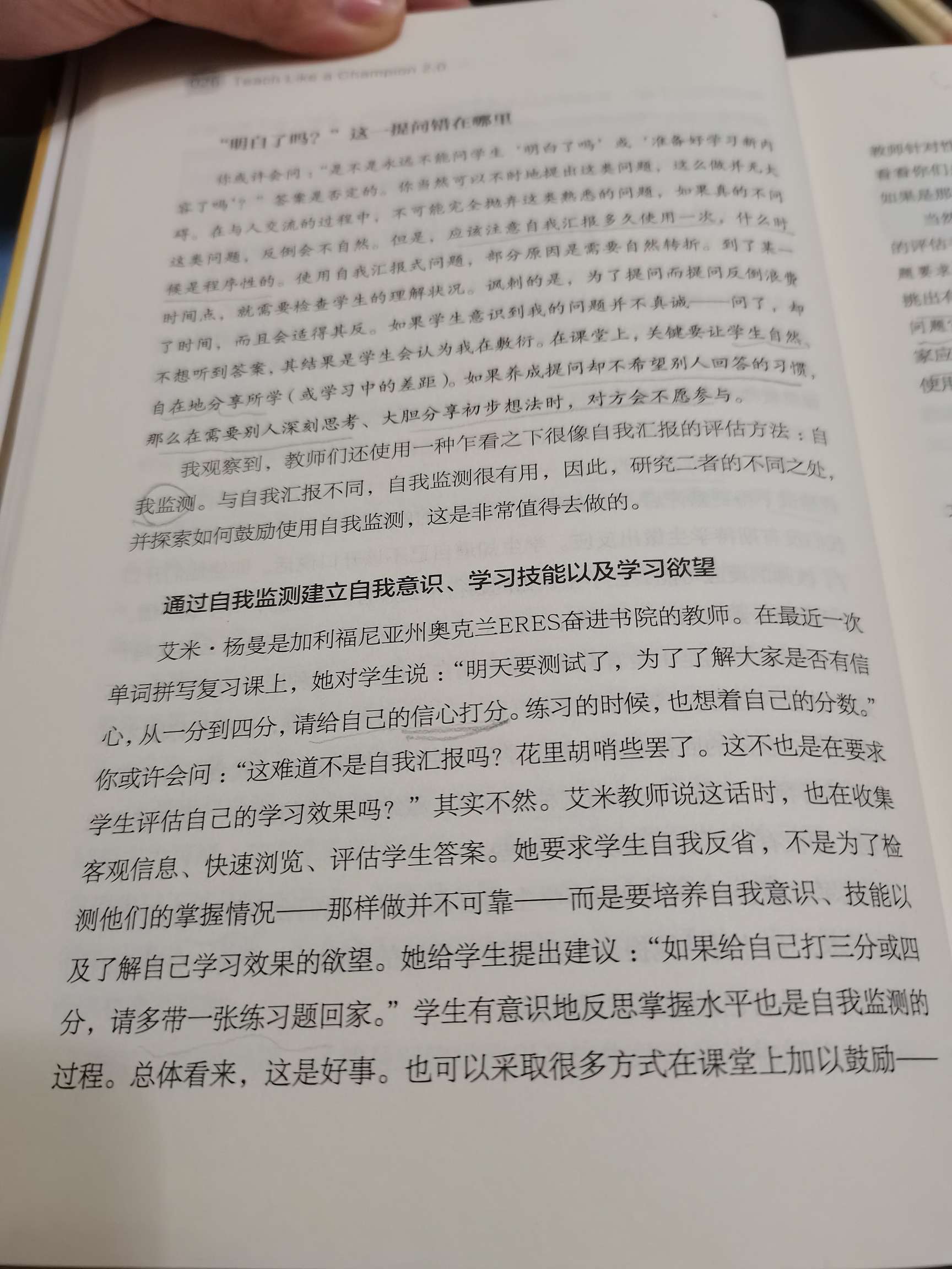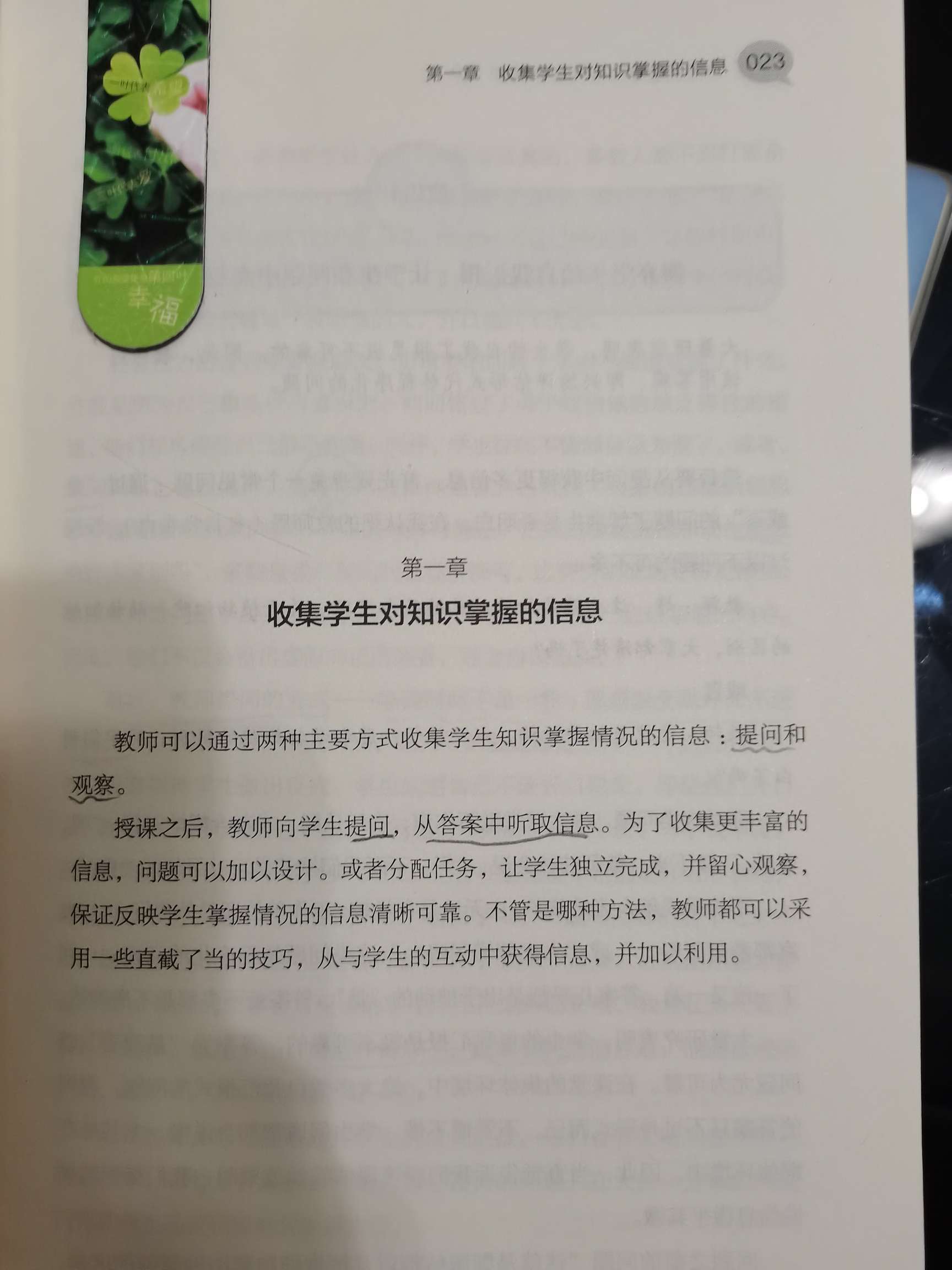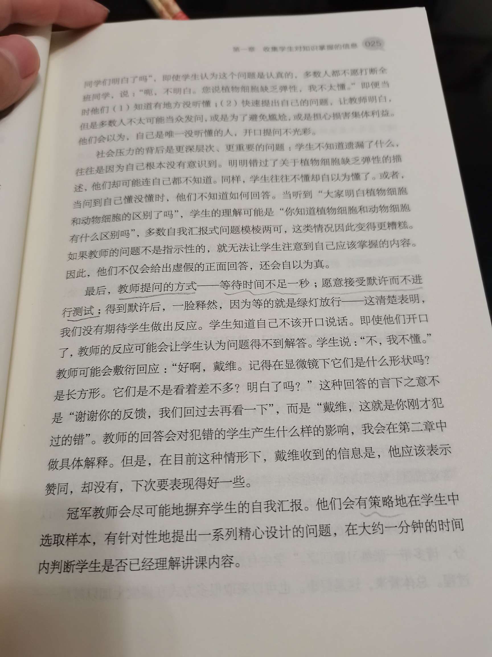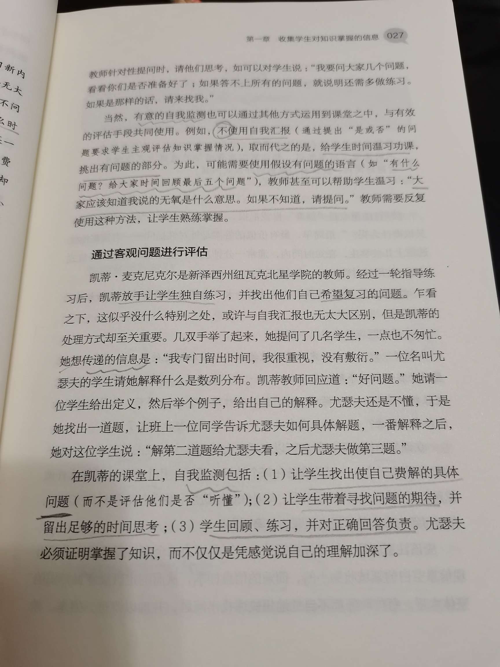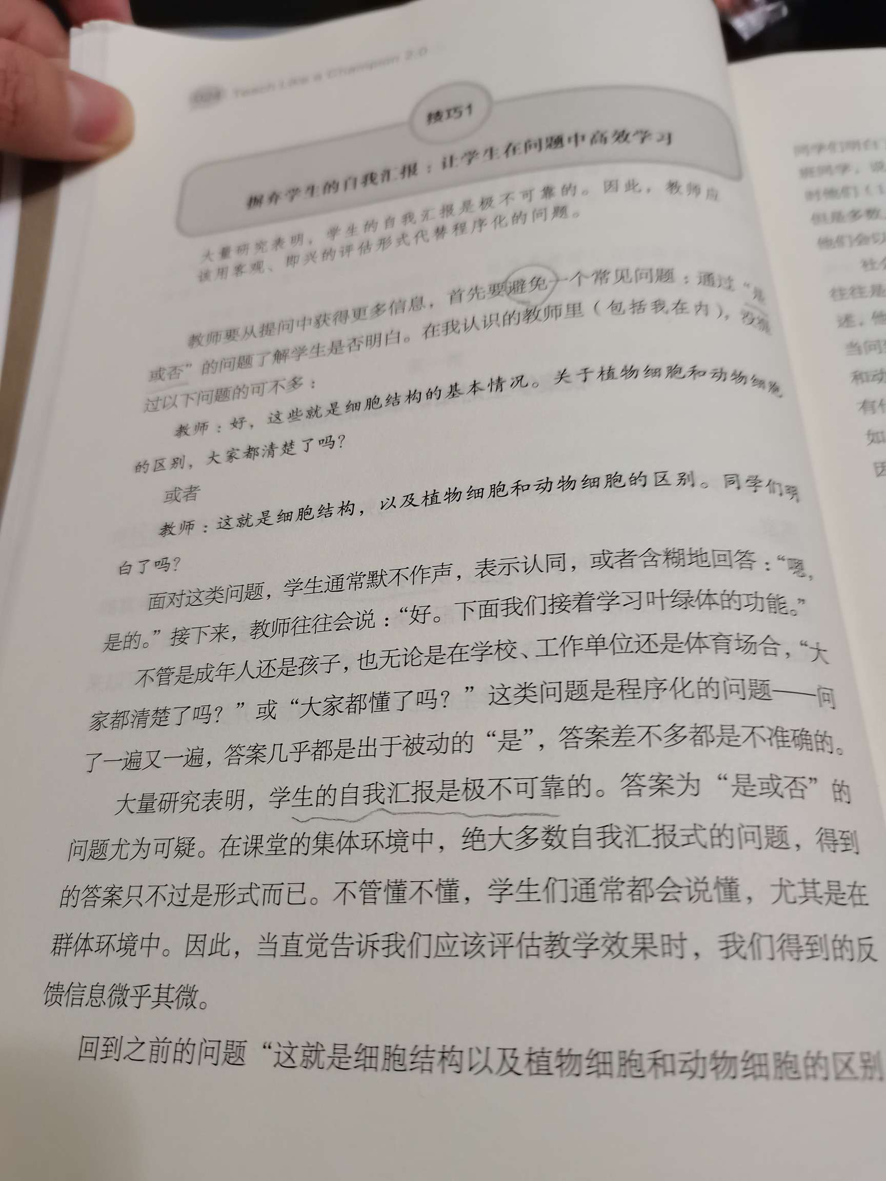 教师一般通过提问和观察两种形式收集学生掌握的情况。我发现“大家都听清楚了么?”“同学们明白了么?”这样的“是或否”的问题来了解学生是否明白是很不可取的。大量的研究表明学生的自我汇报是极不可靠的。