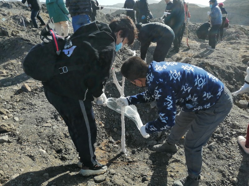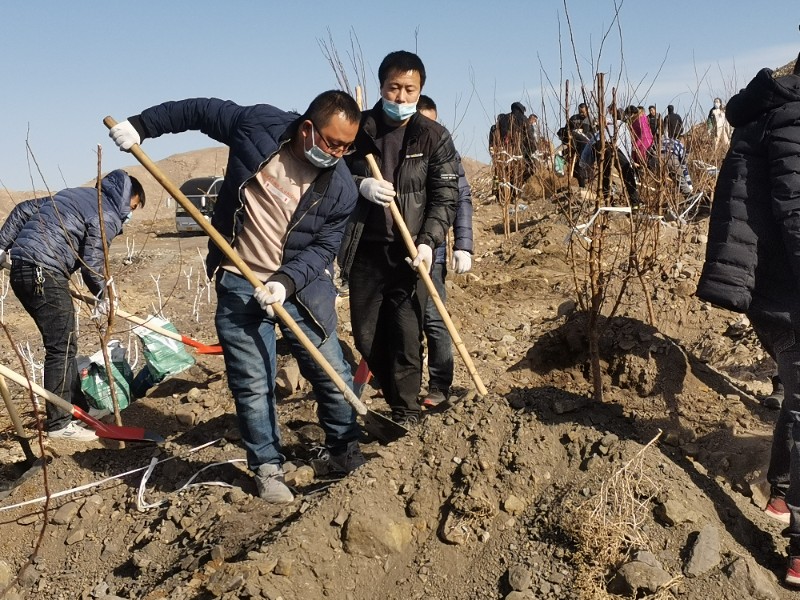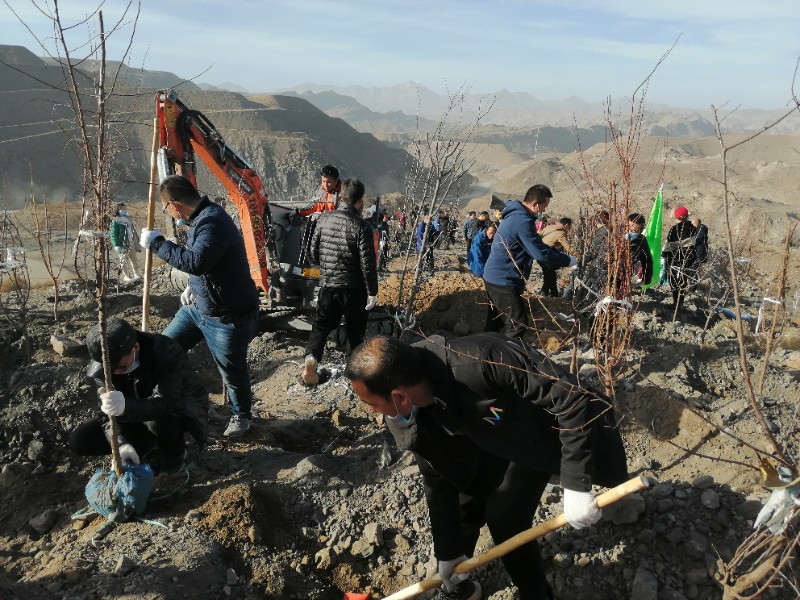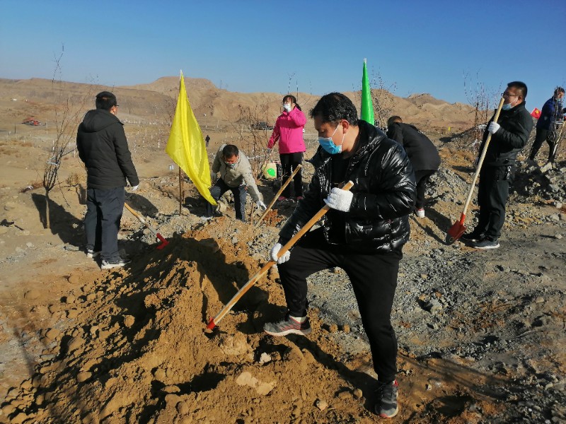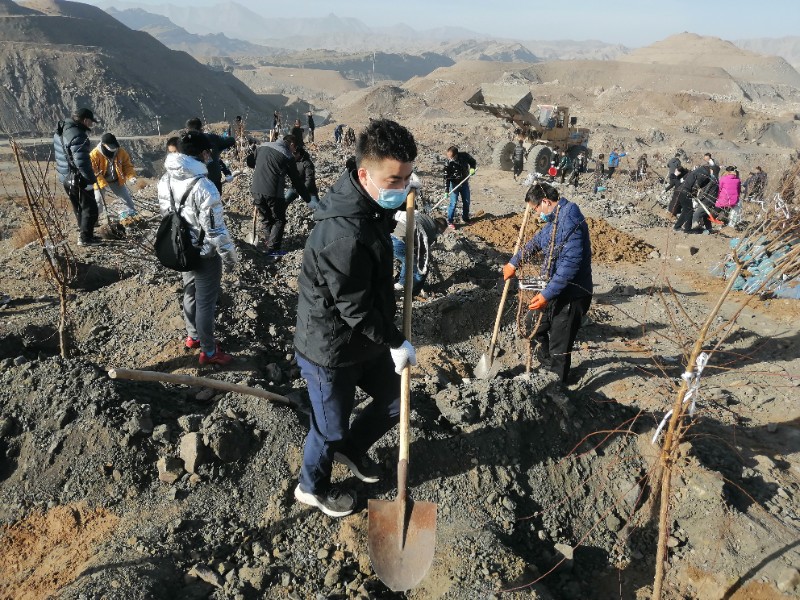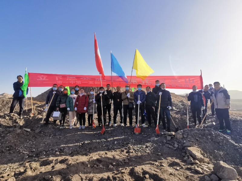 初冬的贺兰山,朔风凛冽,山路崎岖。大家迎难而上、分工协作、配合默契,甘泥沟矿山上响彻着“今日小青苗,明朝绿满山,发扬愚公志,绿化贺兰山”的嘹亮口号。百名党员服从指挥,严格按照规定流程操作,秩序井然——深挖坑、厚陪土、齐剪枝、忙缠膜、喷涂料、勤浇水,经过辛勤劳动,300多棵树苗由点成线、由线成片,静待来年吐露新芽,将为贺兰山增添新的风景……