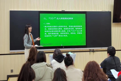 校长张菊红率先垂范,围绕“‘345+’立人课堂变革的再思考”进行了深入浅出、循循善诱的分析讲解,清晰明了的诠释了其深刻内涵。结合具体教育示例,张校长重点对课堂教学五个环节如何落实进行了细致入微的分析。她要求老师们不能只停留在知识传授的层面上,应该根据自己的教学实际灵活处理,尽量做到五环节齐全,关注各个学科的融合发展,落实学生素养,培育有责任、有担当、有理想的新时代“七彩”阳光小先生。