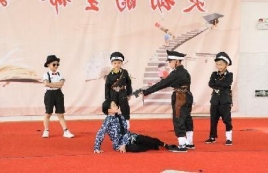《为中华之崛起而读书》、《满江红》、《棉花姑娘》、《巨人的花园》、《金色的鱼钩》、《拔苗助长》和《去年的树》七篇经典课文在三四年级师生的精心编排和演绎下将内容进行生动的情景还原,以舞台剧的形式表现了出来。无论是服装,还是小演员们惟妙惟肖、富有感情的表演,都令人耳目一新,气氛也异常火热。生动活泼的故事情节、深入细致的人物刻画,精彩的表演无不赢得现场观众的阵阵喝彩。