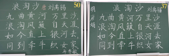 一顿一提显专业,一点一勾展风采。三尺讲台显芳华,手握粉笔书华章。老师们任粉笔在指尖轻舞,“奏”出美妙的“旋律”。一行行赏心悦目的粉笔字或方正或圆润、或清秀或苍劲。充分展现了老师们的书写水平,体现了老师们对教育工作的热爱和对学生的负责。