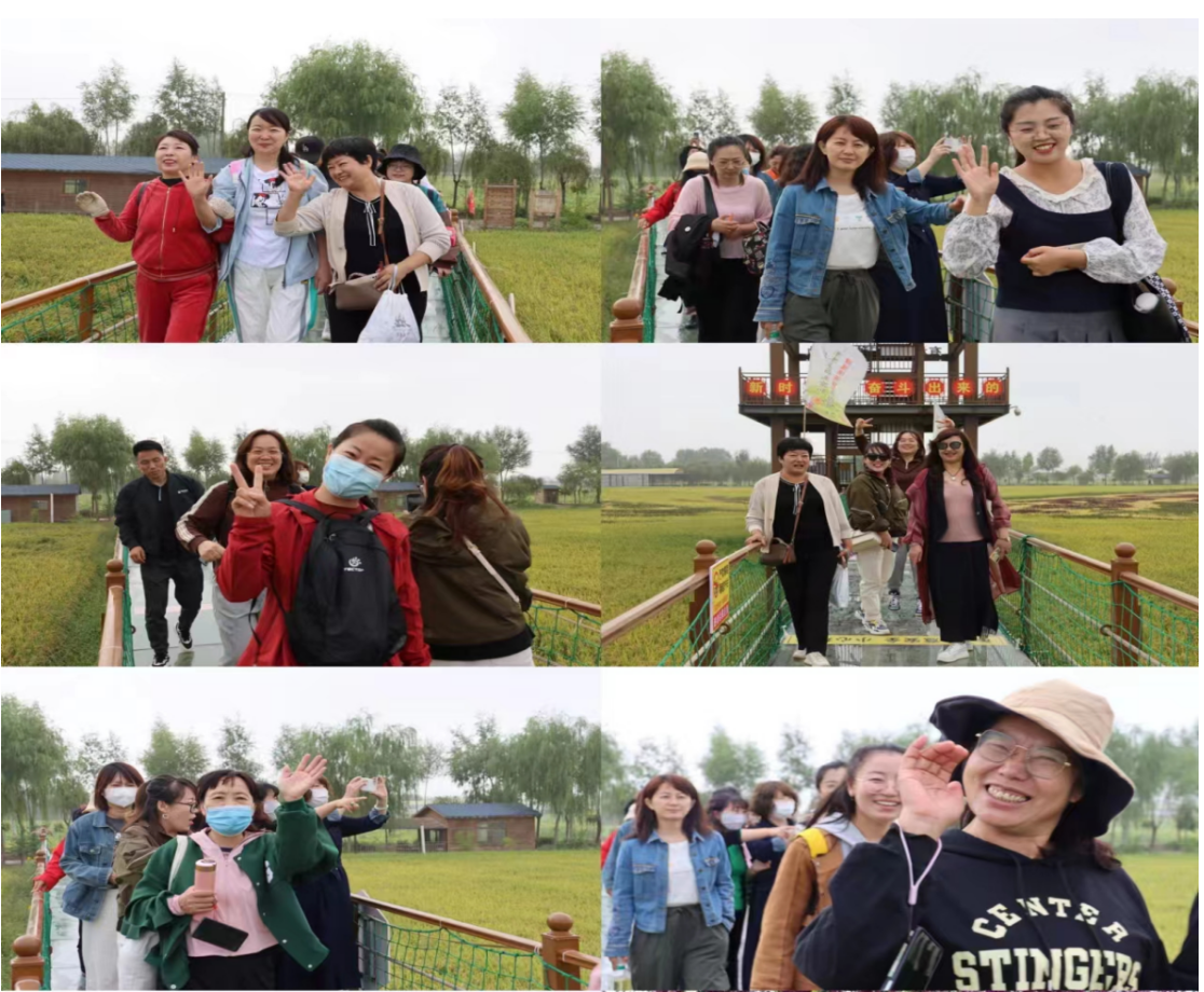 职工教师畅游稻田中,通过观察每粒水稻的长势和状态,了解水稻生长的过程。沿途彩色稻田尽入眼底,眼前豁然开朗,原生态的地貌景观,仿佛是陶渊明笔下的世外桃源,琼瑶笔下浪漫的幽幽谷。