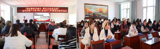 37位来自同心县名师工作室成员分为音乐、美术、体育、信息技术和劳动学科共5组,与我校各学科教师一起,同时进行听课和教研活动。