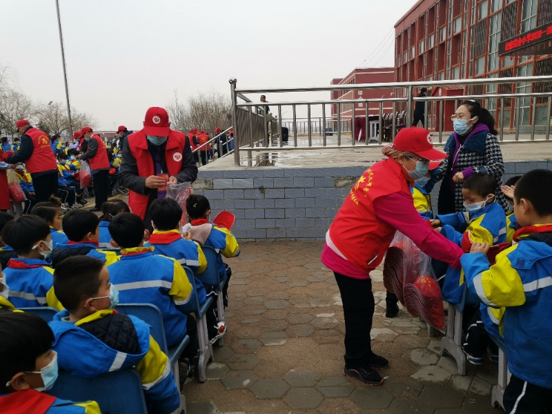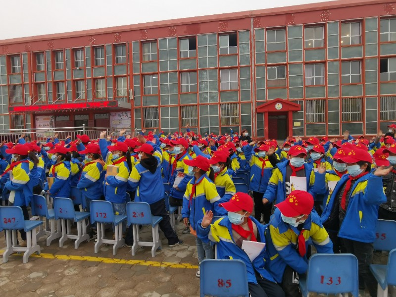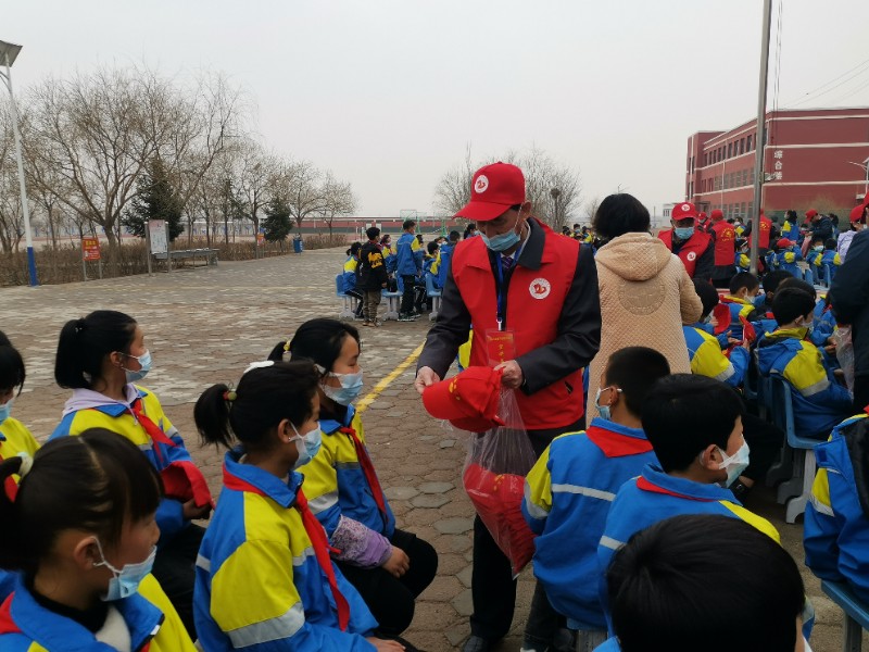 老干部宣讲团给同学们送上礼物——小红帽和一些德育书籍,并与同学们“同唱一首歌、同升一面旗”,活动在激昂的国歌声中拉开帷幕。