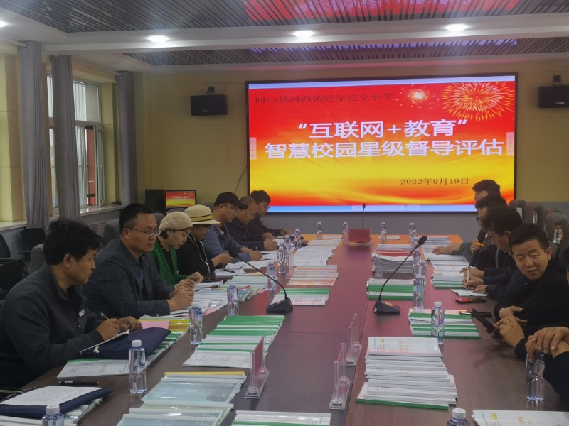 9月19日下午,同心县教育局信息中心马自江主任带领智慧校园评估组一行在河西镇中心学校李宗英校长陪同下,莅临同心县河西镇纪家完全小学进行“互联网+教育”智慧校园星级督导评估验收。