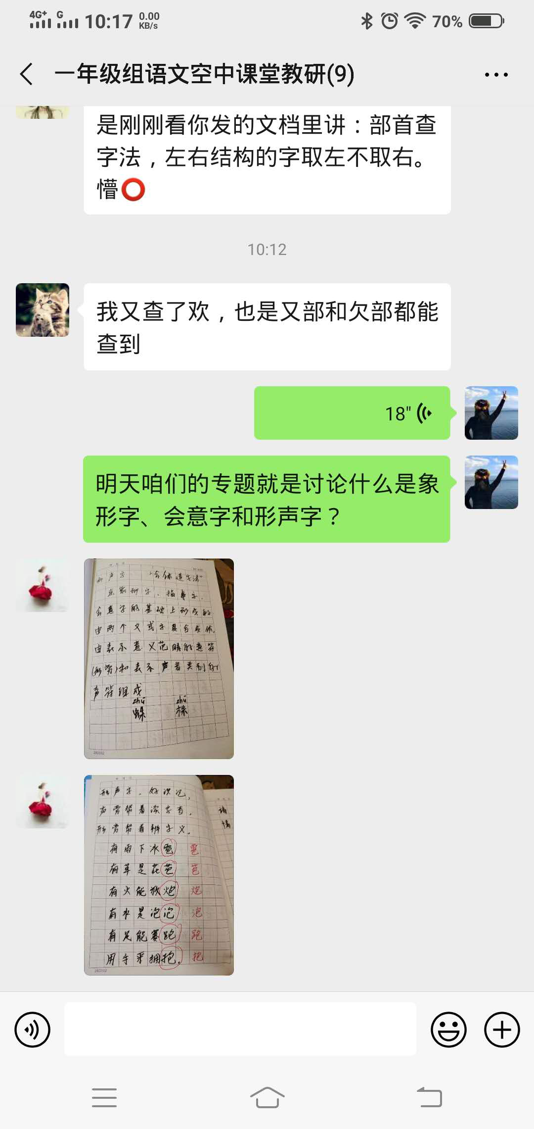 第一单元是识字教学,这两周以“汉字的构造”、“偏旁和部首的区分”、“识字方法”为主要教研任务,在大家共同努力下,我们9位语文老师各抒己见,在教学上取得了不错的效果。