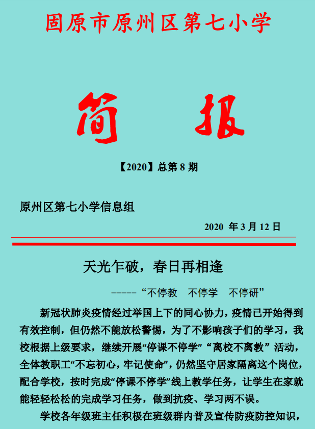 发布时间: 2020-03-15 19:31 发布单位: 固原市原州区第七小学 浏览量: 2310 【公开】