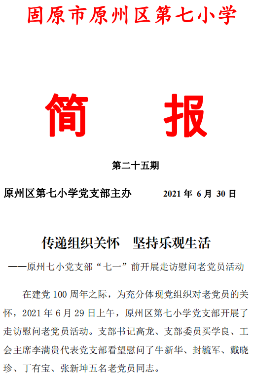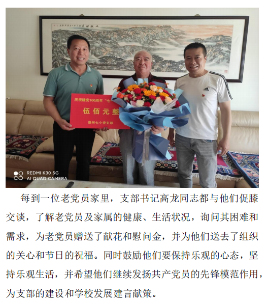 原州七小党支部“七一”前开展走访慰问老党员活动