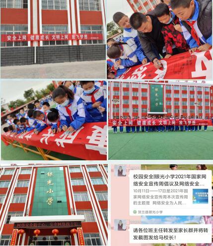 为深入宣传贯彻习近平总书记网络强国的重要思想,宣传贯彻习近平总书记网络安全工作“四个坚持”的重要指示,普及网络安全知识,提升教师及学生网络安全意识和防护技能。加强疫情防护期间大数据安全、和人信息保护和互联网新技术新应用的安全宣传普及,银光小学开展了网络安全宣传教育活动。