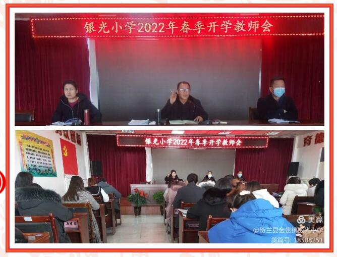 2月20日上午学校召开2022年春季开学工作会议。会议中学校各部门分管领导就各自分管的党建、教学、德育、校园安全、疫情防控、卫生等方面进行了工作安排;丁兆伏同志在向全体教师传达了贺兰县教体局关于2022年教育工作会议精神后对学校总体工作提出了新的要求和希望,他希望学校各部门能将工作精心组织,落实到位,每一位教师能够在新的一年里实干、创新、不断提升自我能力和修养,与学生一起向着“让每一位师生都成为最好的自己”这一美好的学校愿景而努力奔赴。
