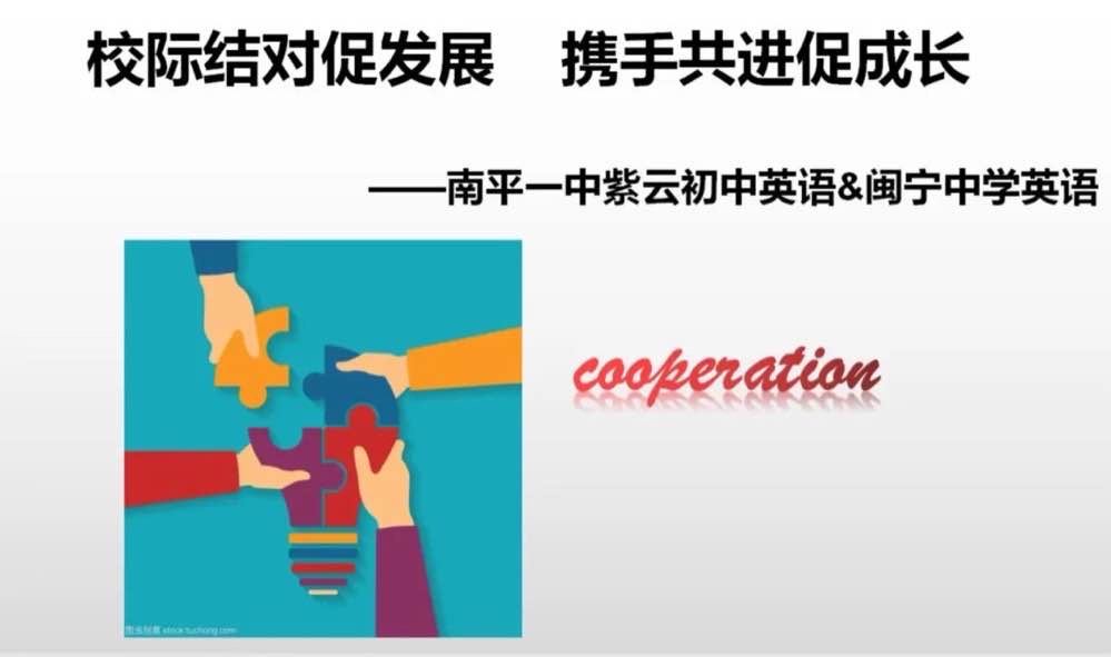 南平一中初中英语教研组和我校英语教研组开展了线上结对帮扶启动仪式。苏玉玲老师分享了南平一中结对安排。目前我们可以进行线上集备教研交流和开展线上课堂教学交流。邀请闽宁中学学科教师通过扫码观看教学的直播,远程参与评课。