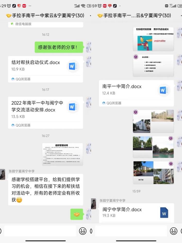 为学习贯彻党的二十大精神,在福建省对口帮扶精神指引下,南平第一中学与闽宁中学的教研组积极开展教学研讨活动,搭建了线上交流平台,两校教师积极群策群力,研教论学。疫情阻拦了两校的实地交流进程却阻挡不了双方互动交流学习的热情。