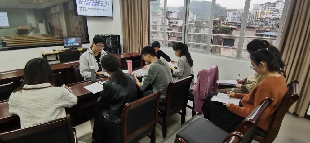 我校语文教研组的老师认真听课并做好听课记录,课后,双方教研组教师对翁老师的课进行细致地点评。南平一中的廖老师提出以下几点教学建议:1.教学思路要明晰;2.关注22版新课标,围绕核心素养备课;3.注重学习任务群的共建;4.教文言文该注意的环节:读准字音,读准节奏、文言的感情基调,注意通假字、古今异义、词类活用等。通过廖老师的详细点评,我们又对新课标有了全新的认识。