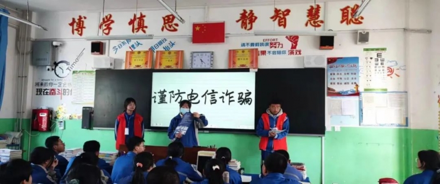 提醒广大师生一定要知道正确的防范方法、端正心态、不能存有侥幸心理,同时注意保护好个人隐私;在遇到电信诈骗时不要理睬,一旦上当受骗,应保存好相关证据,如联系电话、对方账户、转账凭证等、并立即向公安机关报案。通过宣传进一步增强了大家抵制电信诈骗违法犯罪活动的“免疫力”,为打击电信诈骗工作打下了坚实基础。下午班会课,各班充分利用主题班会,通过播放防范电信诈骗宣传片以及发放宣传资料等形式,对电信诈骗犯罪的主要作案形式和手段进行了宣传教育,同时针对当前犯罪分子借助手机、固定电话、网络等通信工具和网银技术实施的非接触式网络电信诈骗违法活动不断翻新各种花样的现象,进一步作了讲解和宣传,使学生掌握了电信诈骗案件的行骗手段和作案特点,提高了自我防范的能力,筑牢学生防电信诈骗的安全“防火墙”。