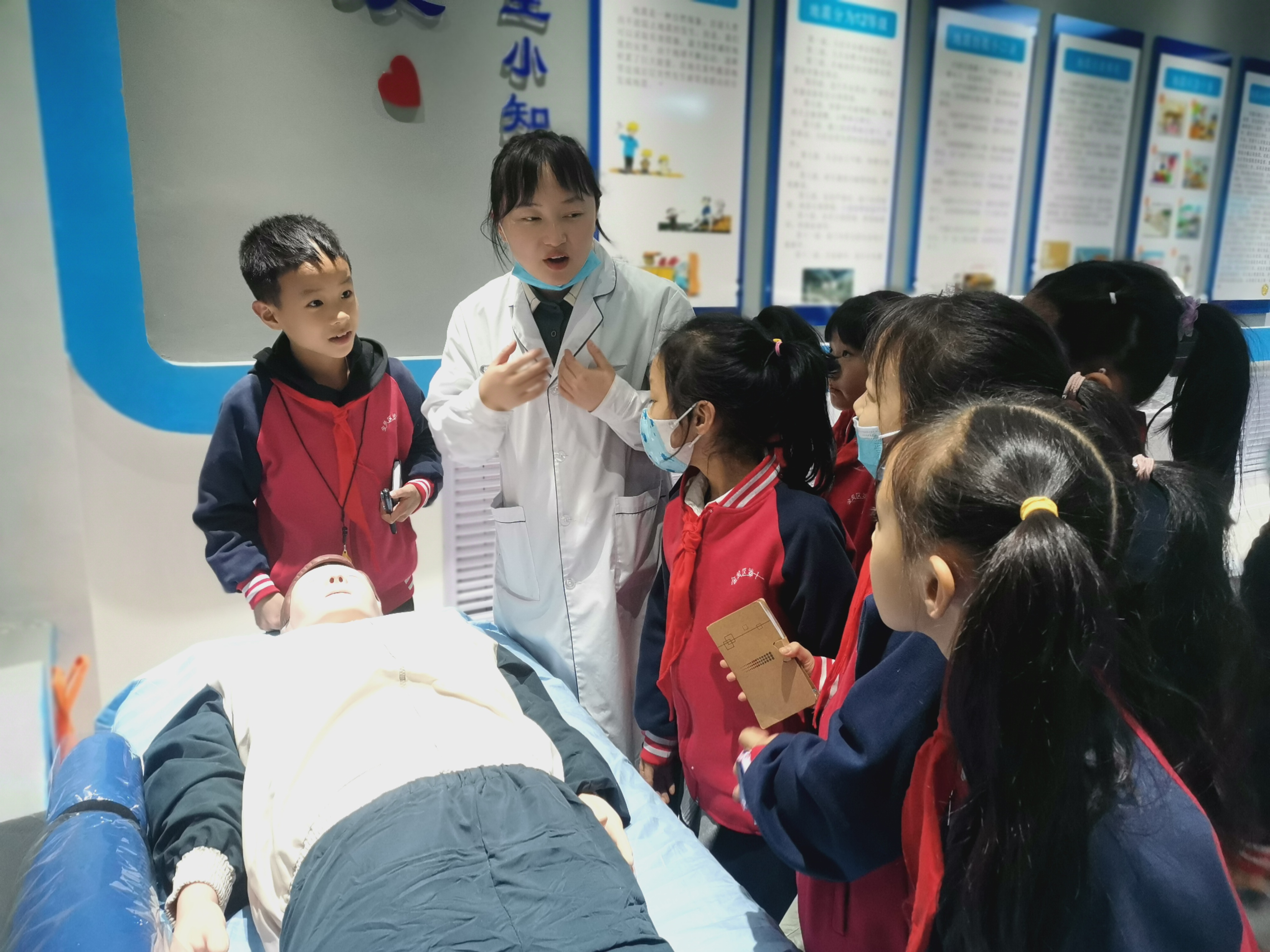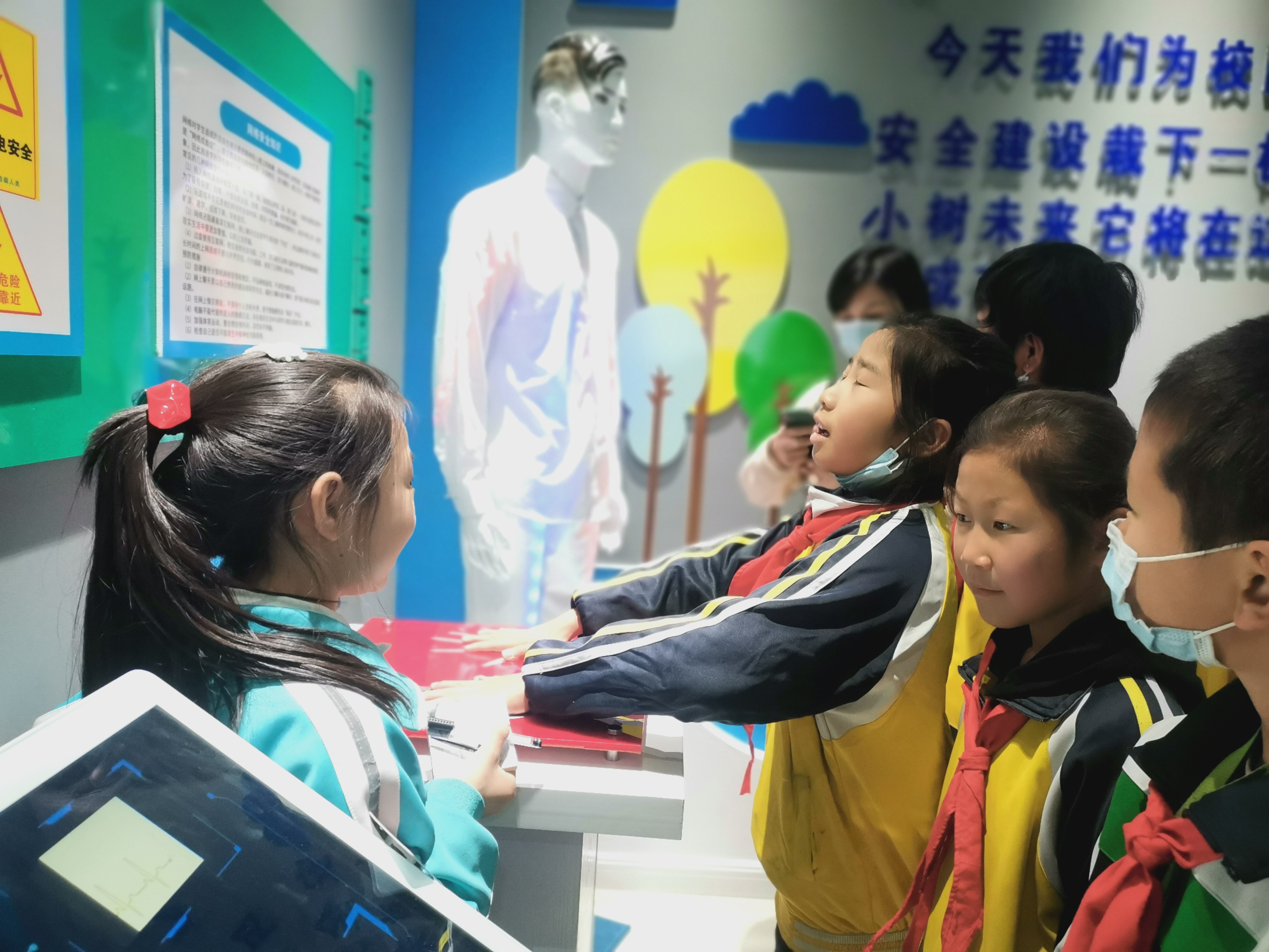 在各位小小讲解员的带领下,学生们多方位、多角度了解学习了禁毒、食品安全、防溺水、交通安全、防触电、消防安全等知识,提升了自身的安全意识。队员们通过人脸识别体验系统,“模拟”了吸毒前中后期的面容变化,进一步了解了毒品、认清了毒品的危害。来观看的同学们无不惊叹于虚拟现实技术的神奇魅力,发出阵阵喝彩。