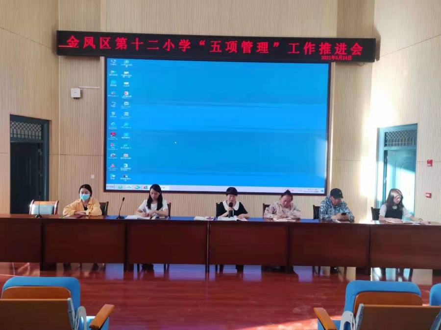 为全面落实党的教育方针,认真贯彻党的十九大精神和全国教育大会精神,落实立德树人根本任务,切实减轻中小学生过重课业负担,积极营造有利于学生健康成长的育人环境,促进青少年学生的身心健康和全面发展。5月24日下午,我校召开了金凤区第十二小学“五项管理”工作推进会。