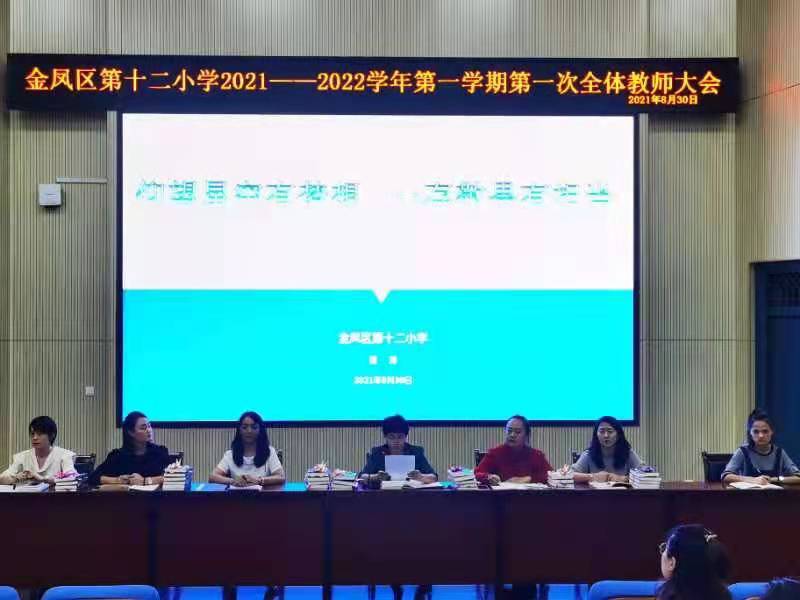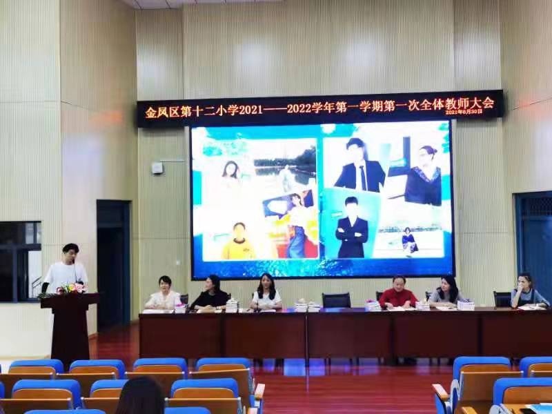 云天收夏色,木叶动秋声。8月30日下午5点,金凤区第十二小学2021-2022学年第一学期第一次教师大会在阶梯教室召开,全体教师以崭新的姿态喜迎新学期。会议在马小燕副校长的主持下拉开帷幕。