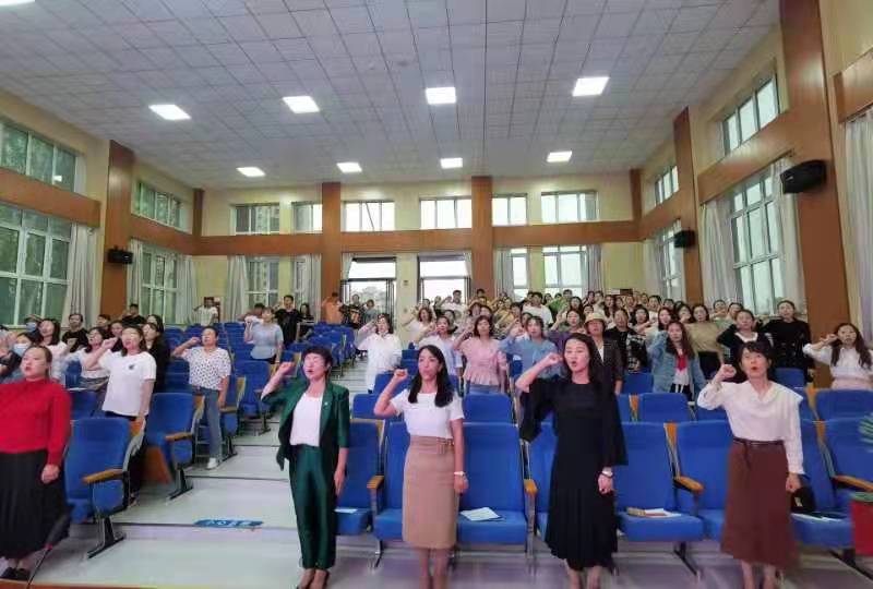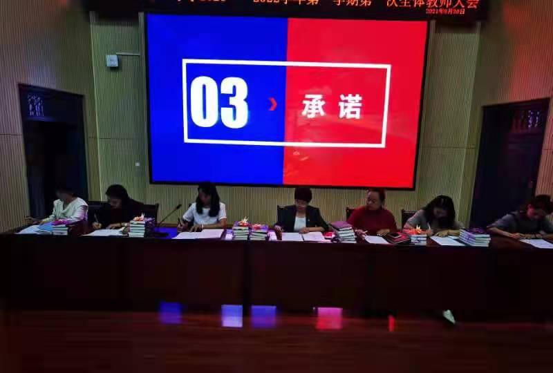 良好的师德,高尚的师风是做好教育的核心。会议第三篇章,由马海丽主席带领全体教师共同学习师德师风相关条例。马海丽主席结合国家政策、教师成长,用真实的案例佐证,为全体教师带来了一场深刻地师德师风培训;紧接着,全体教师郑重签订师德师风承诺书;最后,在费涛校长的带领下,全体教师郑重宣誓。师德为基,教育为本。十二小全体教师将牢固树立正确的政治意识,厚植师德修养,做“四有”好老师。