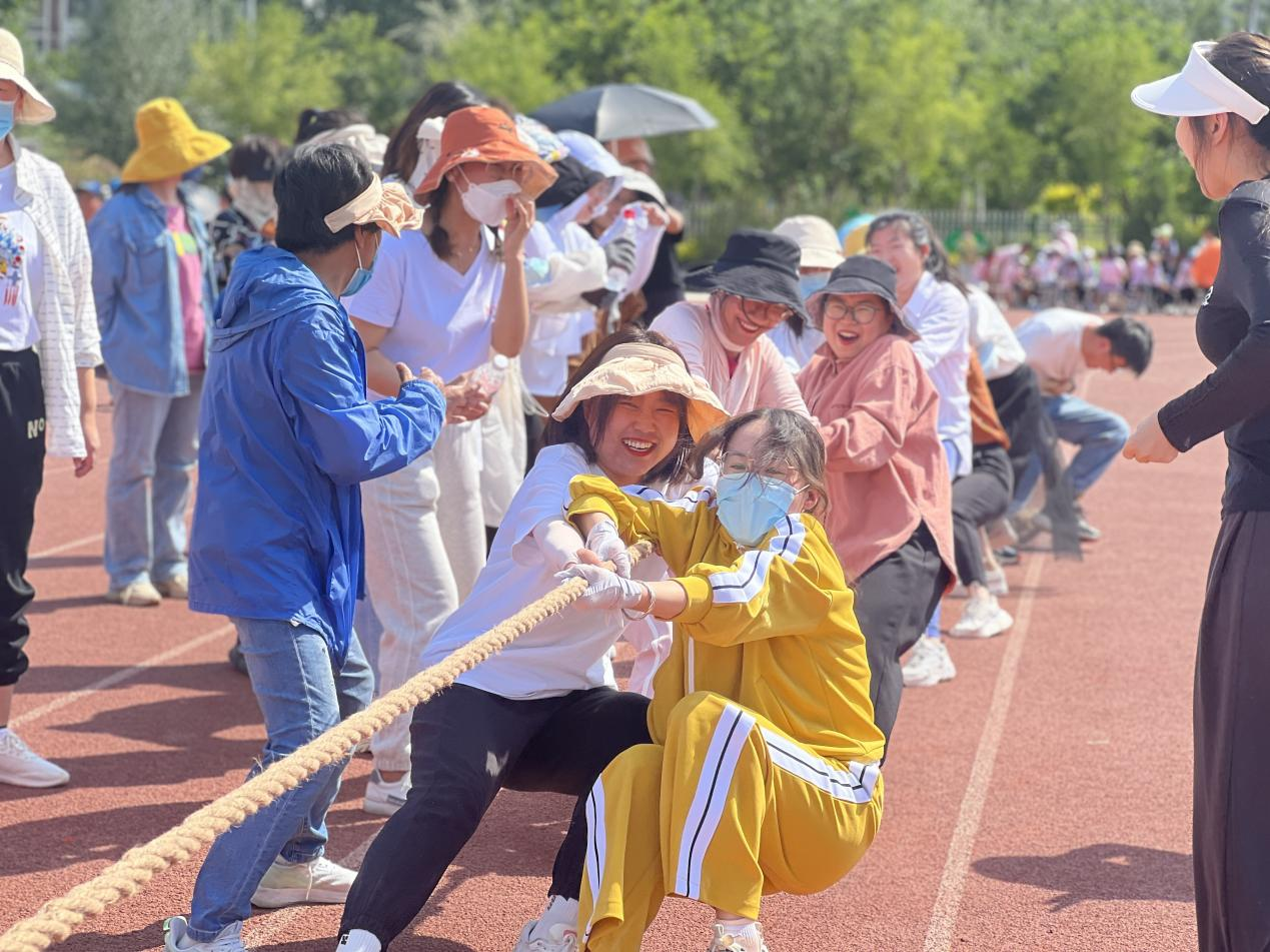 2022年5月20日下午3:00-5:00,校工会在体育学科组老师的协助下组织了本次比赛。广大教职工积极参与“垫子循环赛”、“爱的魔力转圈圈”、“拔河”、“4×100米接力”四个简单而有趣的兼顾了趣味性与合作精神的比赛项目,这些运动项目,既考验团队合作精神,又充分展示个人风采,既需要较高的运动技巧,又非常消耗体力,集娱乐、健身于一体。值得一提的是,老师们人人参与,同台竞技,个个当仁不让,十分投入,充分体现了合作与竞赛的精神风貌。各班的学生也争相为老师加油打气。校运会也在老师们以年级组为单位默契的接力跑中顺利落下帷幕。