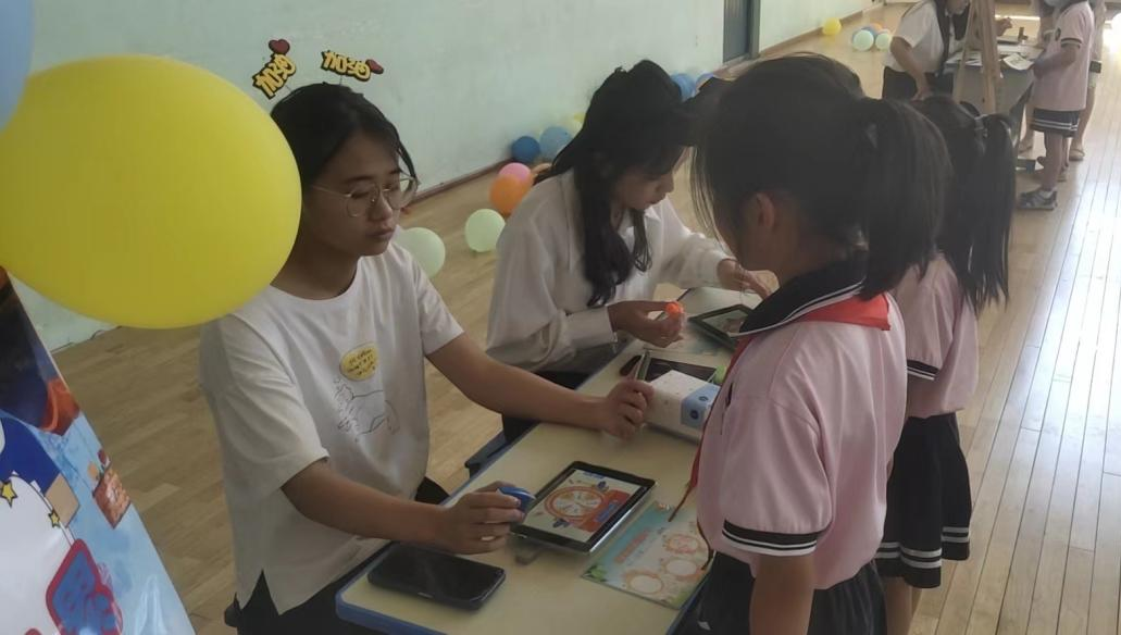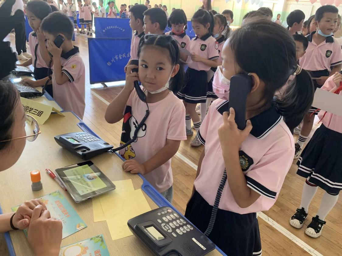 孩子们通过“口语交际”模块的训练后,语言表达能力与人际交往能力都提升了不少。这一关通过模拟“打电话”完成测评。老师们创设了不同的生活情境,摆上真实的电话,激发了孩子们的兴趣,用语礼貌、表达清楚、倾听认真都融合在学生模拟的情境中。