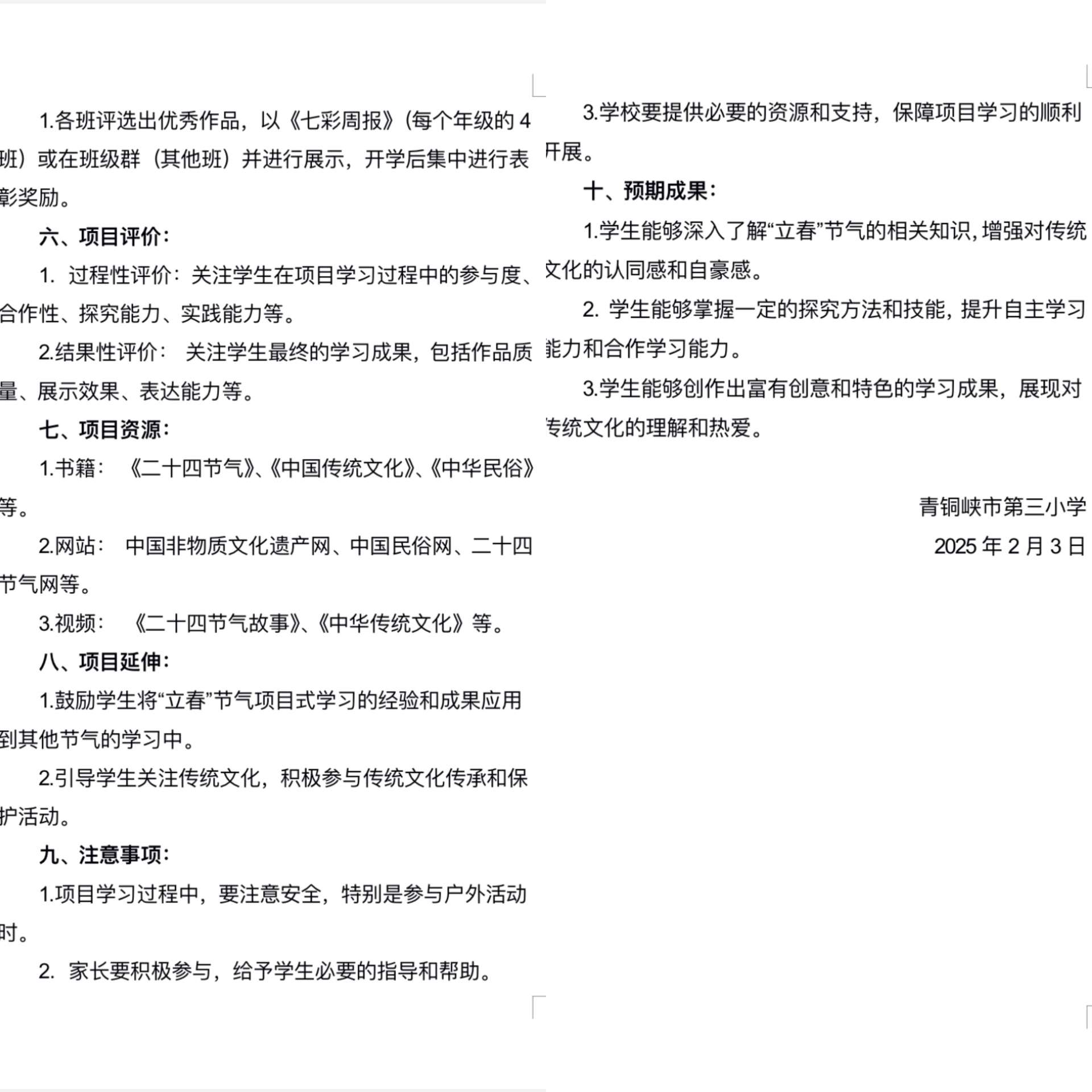青铜峡市第三小学七彩周报(2025年寒假专刊三年级第四期——二十四节气之“立春”)